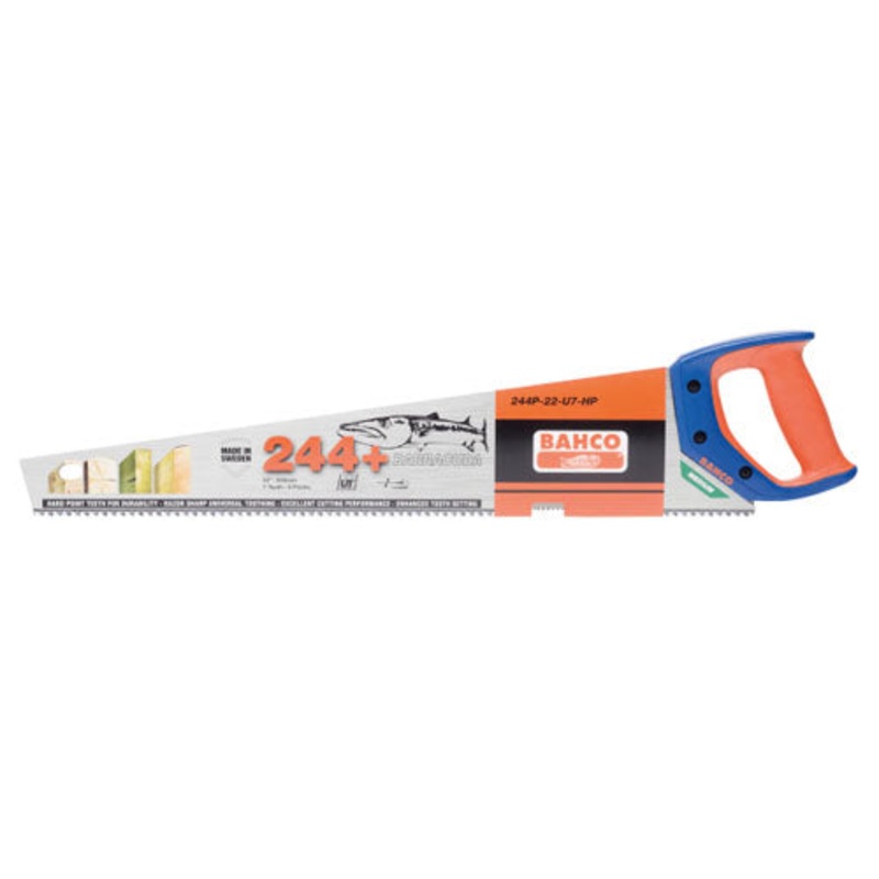 The Bahco 244+ Barracuda Handsaw is a high quality general purpose hard point saw suitable for cutting softwood, worktops, chipboard and MDF.The Super sharp toothing and thicker blade offer faster cutting with improved stability and precision during use an