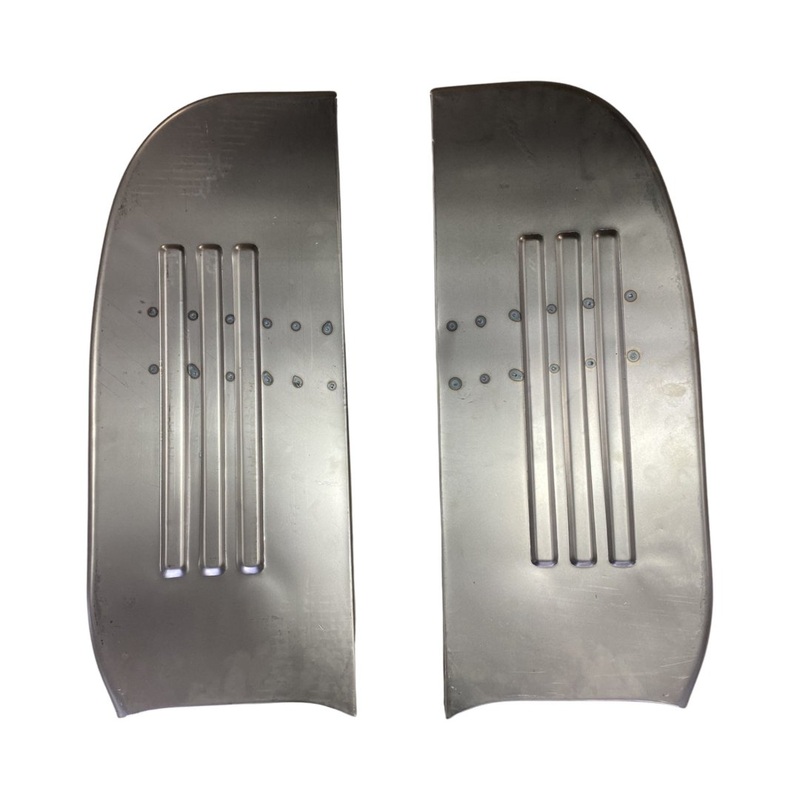 New reproduction passenger and driver side bed step kit. These were originally on the 1947-1949 Willys Pick up Trucks but can be used on the later models with some work to the body skirts. These are properly die formed like the original steps with three st