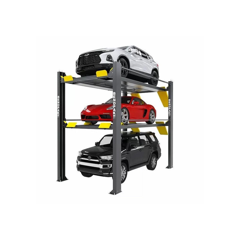 Supersize your parking capacity with this revolutionary tri-level parking lift from BendPak! This unique four-post parking lift design parks up to three vehicles in one space, instantly tripling your parking capacity. With an extended length and taller ris