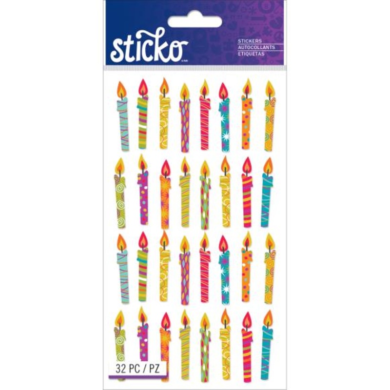 Give your paper craft projects a fun pop of color with these Birthday Candles Stickers. They are perfect for handmade birthday cards or scrapbook pages.Contains 32 stickersFlat stickerscraft supplies, regular-price, stickers, Sticko