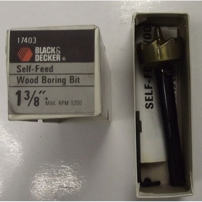 Black & Decker 17403 1-3/8" Self-Feed Wood Boring Bit USAMax RPM 12007/16 triple flat shankMade in the USAIf you are on our eBay store, and are interested in more of our items, we do offer combined shipping!Please understand we cannot see the items in your