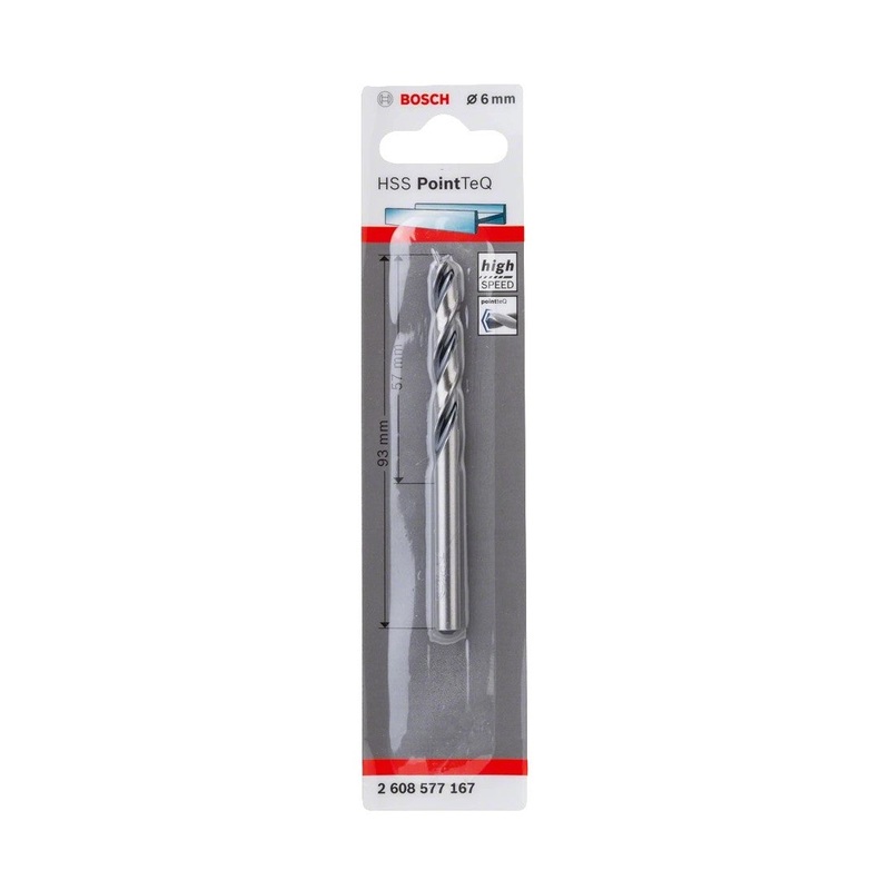 Bosch Drill Bit HSS PointTeQ 6,0mmThe Bosch 2608577167 is a HSS Metal Twist PointTeQ Drill Bit 6,0mm 1pk. The HSS Twist Drill Bit PointTeQ enables fast drilling in metal due to its PointTeQ tip design. Quick and easy drilling starts are possible as the sel