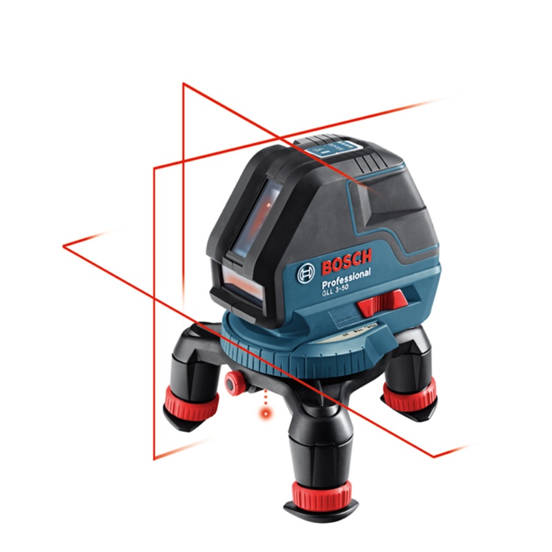 The Bosch GLL 3-50 Three-Line Laser with Layout Beam produces one horizontal line, two vertical lines plus plumb down point - for level, align, plumb and square applications to help users swiftly measure the job with precision. The included a 360 rotationa