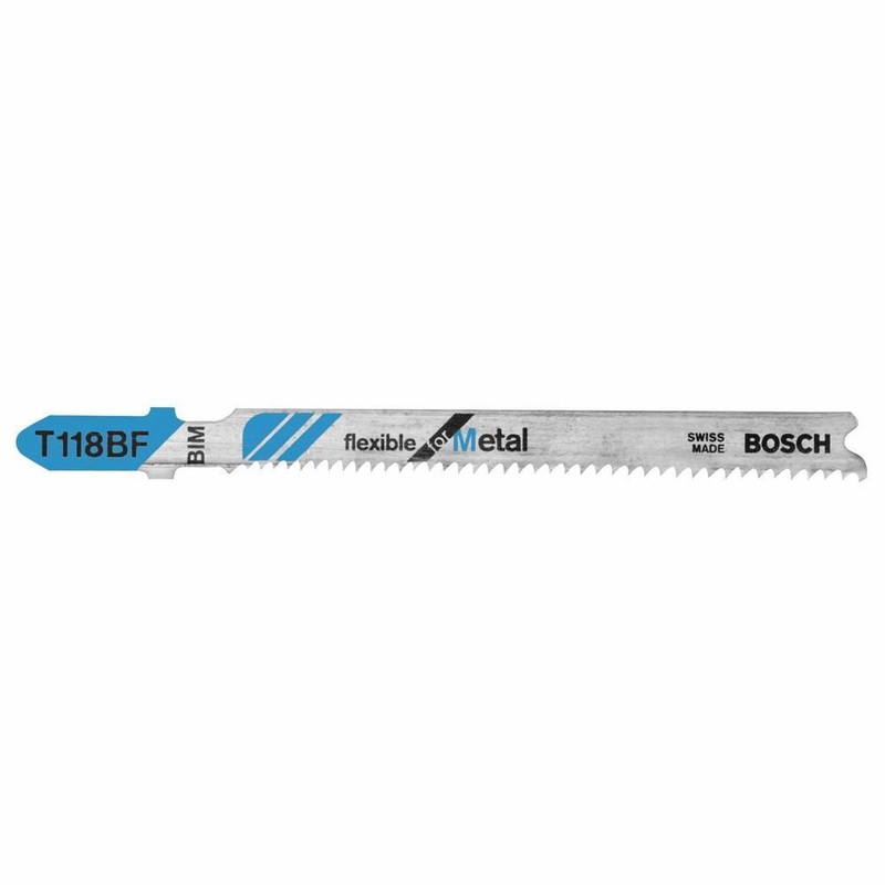 Flexible for Metal blades have bimetal construction for long life and greater flexibility. Designed for cutting sheet metal and thin metals (ferrous and non-ferrous). Ideal for straight or curved cuts. T-shank design for maximum grip and stability which fits 90% of all current jigsaw makes and models.