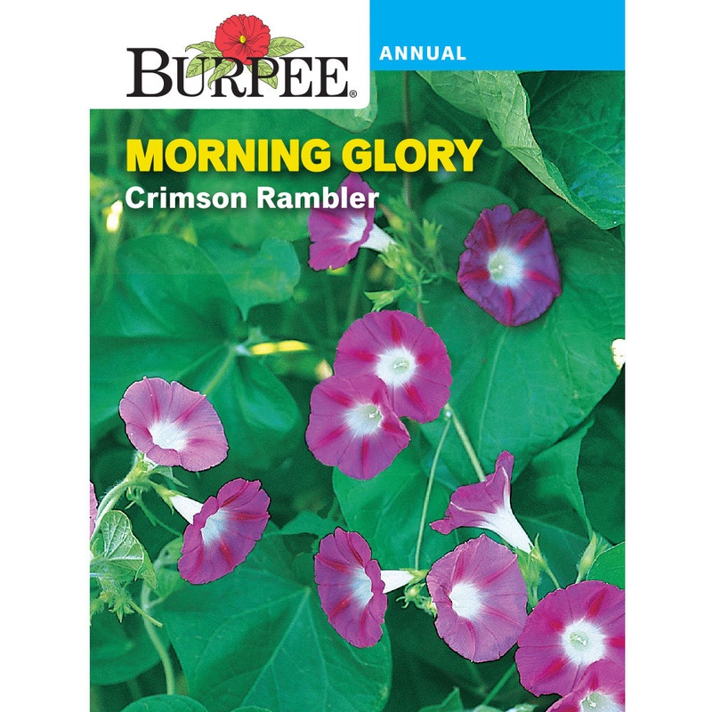Crimson Rambler Morning Glory Flower variety has rosy trumpet-shaped flowers with creamy white throats. Climber.Blooms in late summer to early fall.1 seed pack (1.5 g)Full sun8090 days to bloom10' heightBurpee, regular-price, seeds