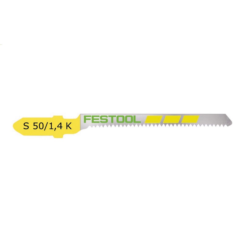 An excellent blade for scroll cutting and making tight curves in a wide range of materials. Achieve very good results in softwood, hardwood, melamine, veneered plywood, chipboard, soft plastics, ABS, HDPE, hard plastics, Plexiglas, acrylics and similar materials. The conical ground teeth ensure very fine cuts even in delicate materials. Festool jigsaw blades are engineered for cutting efficiency, long life, and superior cutting results, with a universal T shank design that fits most professional jigsaws.