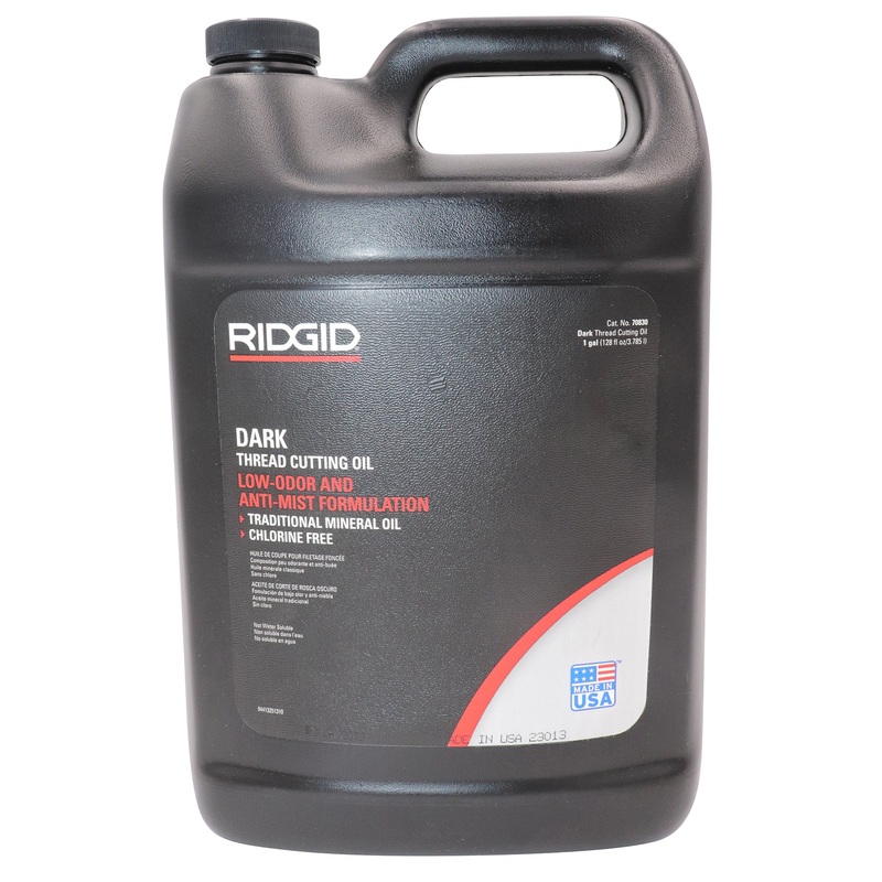 RIDGID thread cutting oils are free of chlorine and other halogens, PCB and heavy metals. Complete material safety data sheet available. Dark oil are traditional mineral oil with low odor and anti-mist formulation.