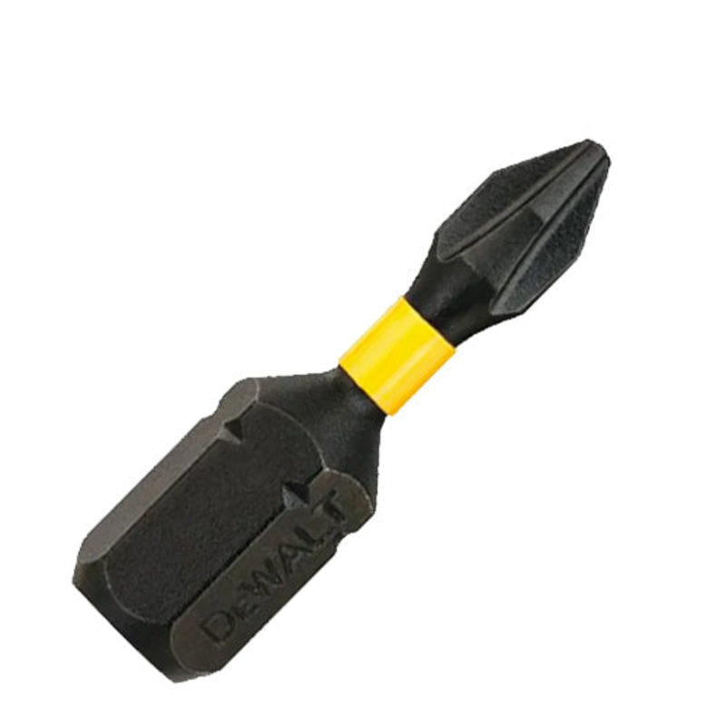 The DEWALT Impact Torsion Phillips Bits have a 15 torsion zone that allows the screw driver bit to flex rather than break and a full fit head prevents the rounding of the screw head and prevents ‘cam out’ (bit head slipping out of screw head due to the turning force).