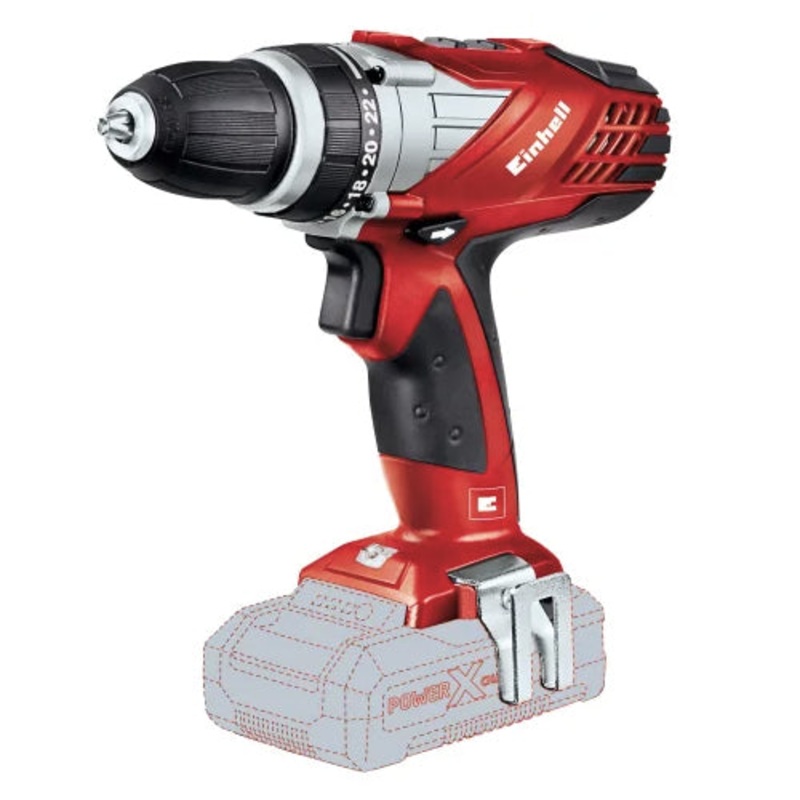 The Einhell TE-CD 18Li-Solo Power X-Change Cordless Drill Driver is a premium and powerful solution for effective drilling tasks into wood, plastic, concrete and metal. This innovative cordless drill incorporates the Einhell Power X-Change one battery fits