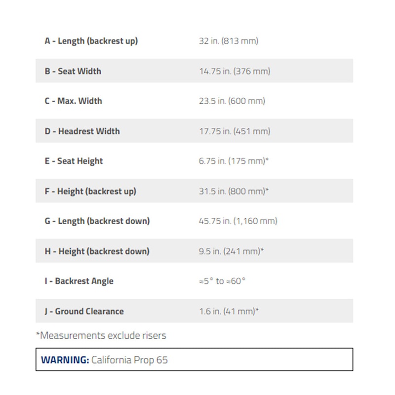 – Locking pins adjust seat height from 14 to 18-inches off the ground.