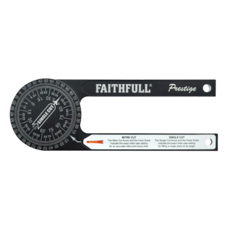 The Faithfull Prestige Mitre Saw Protractor is a modern and accurate way to measure internal and external wall angles. This measurement is commonly used to transfer angles to mitre saws but could also be used as a datum point for hand cutting. Manufactured