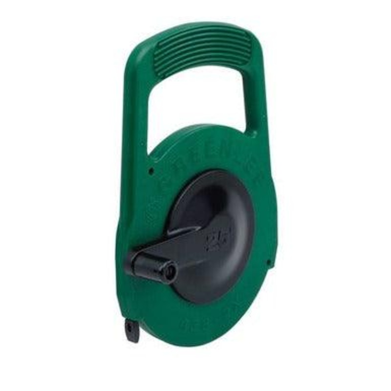 A flat steel fishtape that extends up to 25′ (7.6 m) for easy installation of cables and wires on walls, floors, and ceilings. It features a crank handle and compact structure for easy use and storage.
