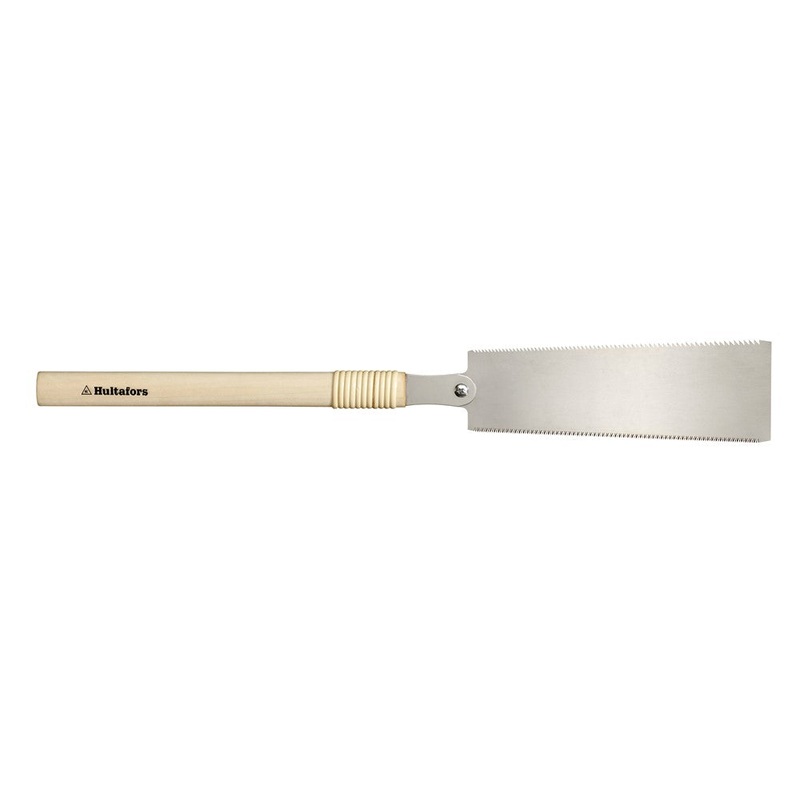 A traditional Ryoba saw with a wooden handle for the authentic feeling. The saw has a 0.5 mm thick blade made from SK5 steel manufactured in Japan. The thin blade provides high flexibility and precision for perfect cuts when making furniture’s etc. The blade on a Ryoba has two different grindings in order to perform both when cutting along and across the fibers in the wood, Rip-cut & Cross-cut. The grinding for pulling the saw makes it possible to create precision cuts with a very thin blade together with a minimal force. The teeth is hardened for maximum life span and sharpness. The blade is antirust treated, do not forget to clean the blade and protect it with some oil to maintain the protection over time.