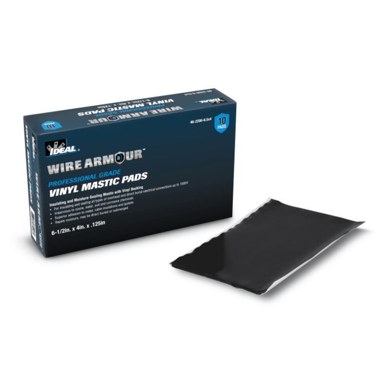 An insulating mastic with vinyl backing which provides superior adhesion and dielectric strength required to seal and insulate electrical connections on buried, submerged, or overhead cables up to 1,000 volts. The vinyl backing adds mechanical strength and is UV resistant. Impermeable to ozone, water, dirt, and corrosive chemicals and adheres quickly and permanently without affecting the insulation or conductive polymer shielding.