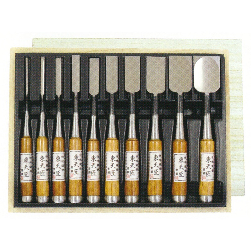 Japanese traditional high-quality wood chisel set.The chisels are crafted by hand.The lead time will be confirmed after receiving your order.Set contents5 pcs set: 9, 15, 24, 30, 36 mm10 pcs set: 3, 6, 9, 12, 15, 18, 24, 30, 36, 42 mm