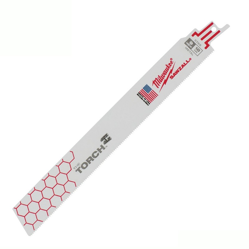 The Torch metal-cutting blades with the Double Duty Upgrade feature a tooth form optimized for the longest life and maximum durability. Tough Neck is engineered to protect against tang breakage and delivers the strongest SAWZALL blade tang on the market. Grid Iron features a stamped honeycomb pattern throughout the body of the blade that greatly increases the rigidity of the blade, making it the stiffest metal cutting SAWZALL blade on the market. These blades are ideal for making tough, straight cuts.