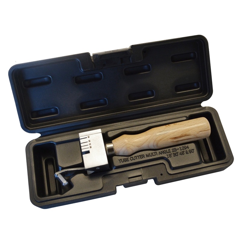 This tool is ideal for cutting perfectly straight tubing and metal stock with multiple angles: 15, 30, 45, and 90. Simple lay the tubing stock across the V-slot channel, then clamp the piece down with the finger-held holder and saw. Comes with a durable and protective plastic storage case.