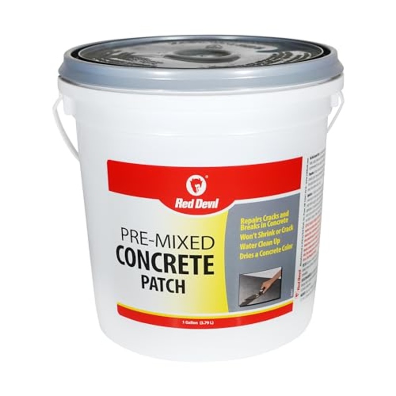 Pre-Mixed Concrete Patch is a ready-to-use concrete patch for the repair of holes, cracks, breaks and other imperfections in concrete or masonry surfaces. Not recommended for areas subject to vehicular traffic. Red Devil Concrete Patch is a pre-mixed, ready to use concrete patch for the repair of holes, cracks, breaks and other imperfections in concrete or masonry surfaces. Not recommended for areas subject to vehicle traffic.