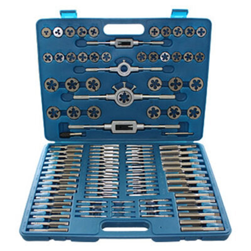 Normex 110pc Metric Tap & Die Set (M2 - M18)Dies and hand taps (taper and plug) in following sizes:M2 x 0.4, M3 x 0.5, M4 x 0.7, M5 x 0.8, M6 x 0.75, M6 x 1.0, M7 x 0.75, M7 x 1.0, M8 x 0.75, M8 x 1.0, M8 x 1.25, M9 x 0.75, M9…