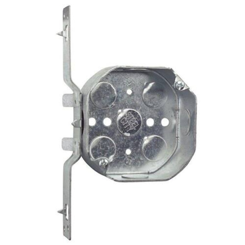 About This ProductThe 4-inch Octagon Box with V Bracket is constructed from steel for long-lasting performance. It includes 8 knockouts to enable various setup options. Designed for use with conduit.Key Features Suitable for indoor use Constructed from ste