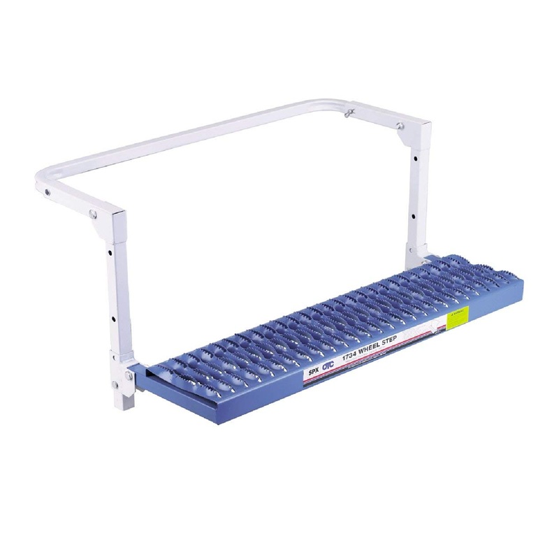 Tire-mounted wheel step provides quick, easy access to under-hood components.Fits heavy-duty vehicles (Class 7/8).300 pound capacityAdjusts to fit 22-1/2" to 24" wheel sizes.Non-skid platform surface.
