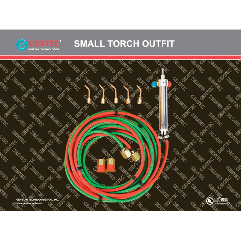 Each basic kit includes Gentecs Small Torch handle, (5) tips (#3, #4, #5, #6, #7) , and 12 oxygen and fuel hoses with B fittings (9/16) and A fitting (3/8) adapter.