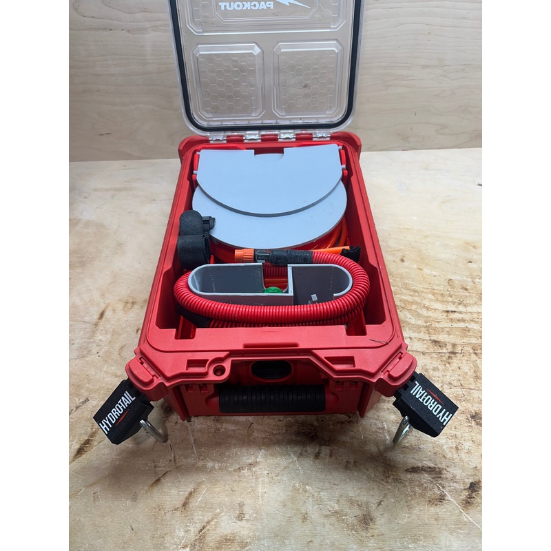This insert is designed to store and dispense the Hydro-Tail, Hydro-Tube, and included accessories.It is made up of 3 parts:Base Plate - Holds the other 2 parts and has dedicated spots for included Velcro strapsHydro-Tube Dispensing Reel - Holds 100' of Hy