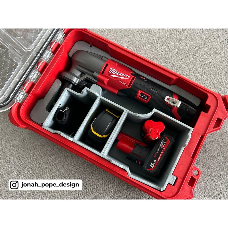 From the designer:This is a custom insert that I have designed to fit your Milwaukee Packout to store your M12 Nibbler and accompanying kit. It specifically fits theMilwaukee 48228435 PACKOUT Compact Organiser.The specific M12 Nibbler that this is designed