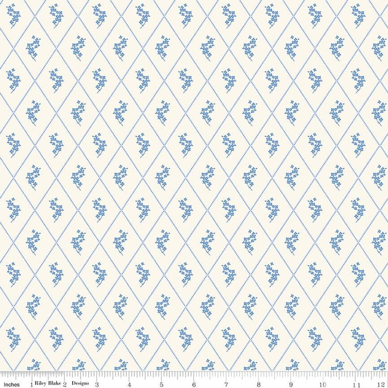 The Penelope Fabric Collection is soft and serene and brings together timeless elegance and subtle beauty in classic blues and creams. Penelope Collection Diamond Cotton Fabric C16642 features a diamond grid with a sprig of flowers in the center. Cotton fabric is easy to cut and sew and is great for making quilts, wall hangings, home decor, and more.100% cotton44 inches wideDesigned by My Mind’s EyeBrowse more of the Penelope Collection here.