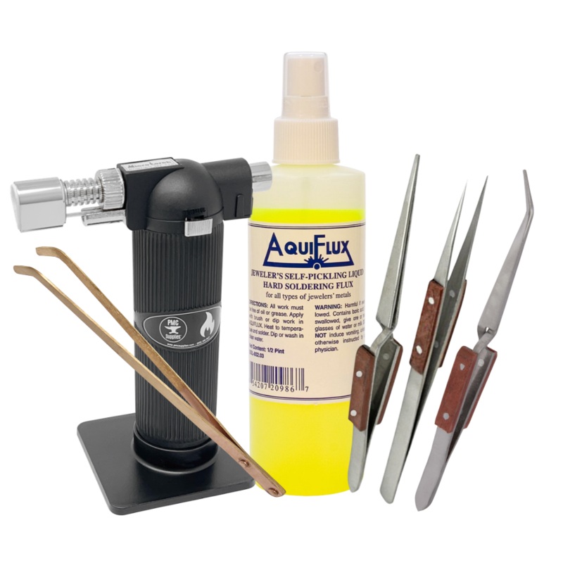 Elevate your craftsmanship with our comprehensive soldering and jewelry-making kit.It includes Aquiflux self-pickling flux for clean, reliable joints and a set of precision tweezers, including 9" Copper Pickling Curved Tweezers Tongs, 6-1/2" Straight and C