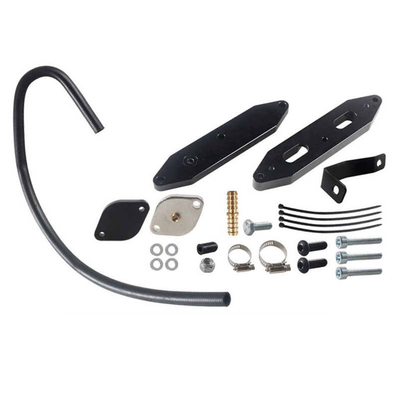 2011+ Ford 6.7 EGR Kit. Includes pass-through sandwich plate and pre-threadded bung for reusing temp sensor.Made by Pro Power Diesel in the USA.