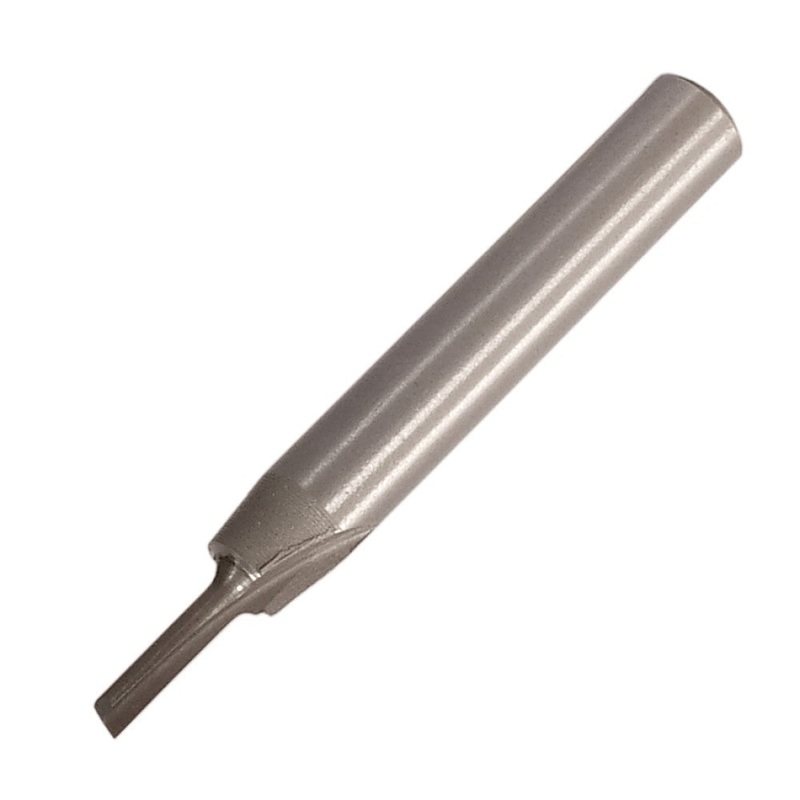 In choosing a straight bit for any application, always select one with the shortest cutting edges and the shortest overall length that will reach the required cut depth. Excessive length intensifies deflection and vibration, which degrade cut quality and lead to tool breakage.
