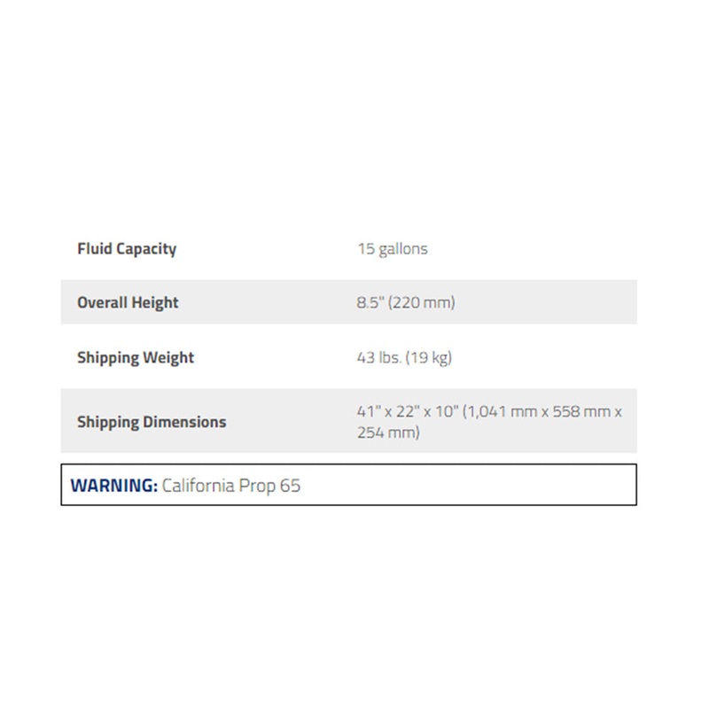 The RD-15 is your low-profile, portable oil drain solution. Easily emptied by gravity or evacuation pump.This heavy-duty, low-profile oil drain gives you 15 gallons in the tub, so its perfect for truck and RV service. Removable steel mesh keeps foreign deb