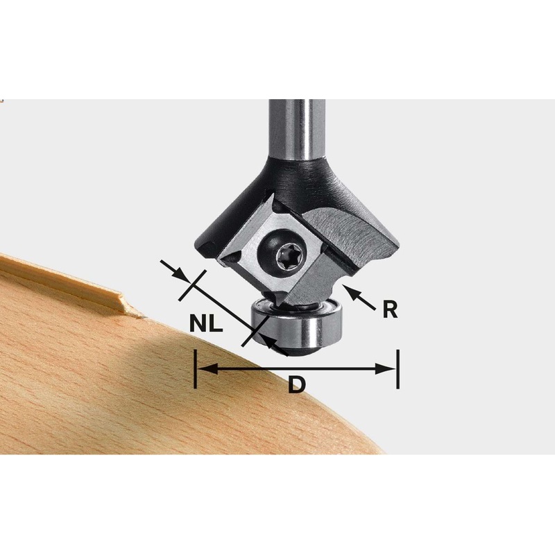 Cutter for rounding wood and plastic edges as well as solid wooden work pieces. Reversible carbide blade provides extreme precision, no re-sharpening required. Extremely economical due to long useful life. Reversible blades can be used 4 times and are easy to replace.