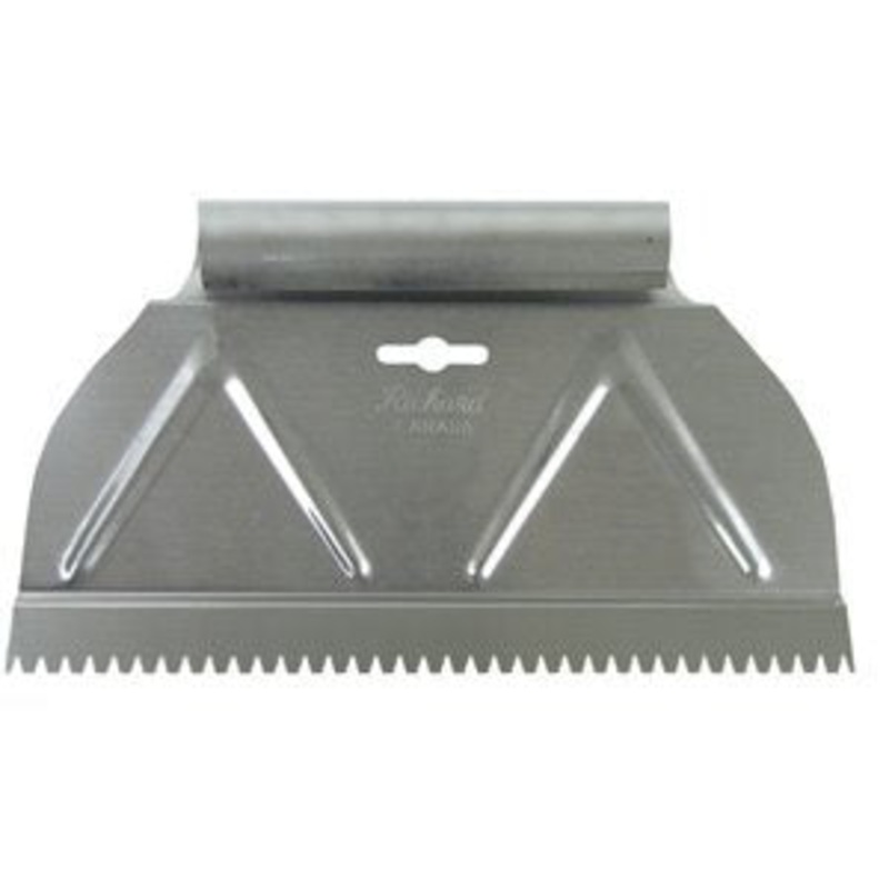 Features:Blade surface is embossed with ridges for strengthSpecifications:9" (3/16" x 1/8" x 1/8")Cold-rolled satin-finishes steel bladesUses:Applies adhesive (follow adhesive manufacturer's recommendation for tool notch size and style)* All Pictures Shown
