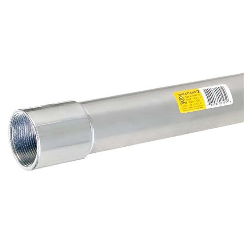 About This ProductThis 1-1/2 inch by 10-foot Rigid Metal Conduit (RMC) offers physical protection for cables and conductors. This RMC, made of hot-dip galvanized steel, comes with a coupling on one end and a thread protector on the other.Key Features Desig