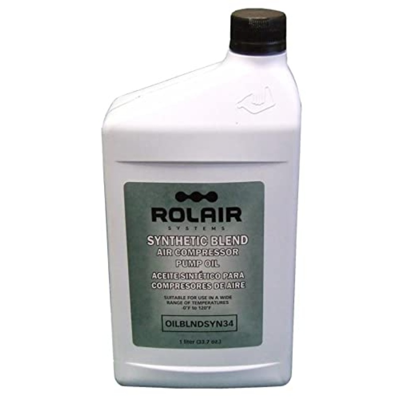 Using the right oil with your compressor is vital to its performance and health, and Rolair 34-ounce (Bottle) All-Weather Synthetic Blend Air Compressor Oil is the ideal fuel for your compression device. It allows your compressor to function in harsh weather conditions ranging from -40 to 110 degrees Fahrenheit. This synthetic blend air compressor oil will also reduce the buildup of carbon on your compressor’s valves, resulting in optimal compressor functioning for a long time. It also reduces the need for regular repairs and maintenance, and reduces the frequency of needing an oil change. Rolair oil helps with use in frigid temperatures, as it makes it easier to start the compressor in such conditions. Plastic bottle comes with 34 ounces of oil and provides 2,000 to 4,000 hours of life in compressor.