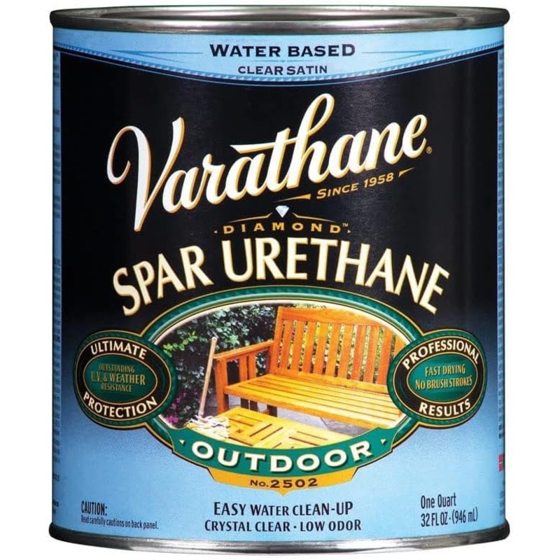 Varathane Ultimate Water-Based Spar Urethane provides a crystal clear, coating for exterior wood surfaces with long lasting durability. Self leveling polyurethane seals out water and offers superior resistance to scratches, weather and UV damage with easy soap and water clean up. Apply a minimum of 4 coats of non yellowing poly for maximum helps on outdoor projects.