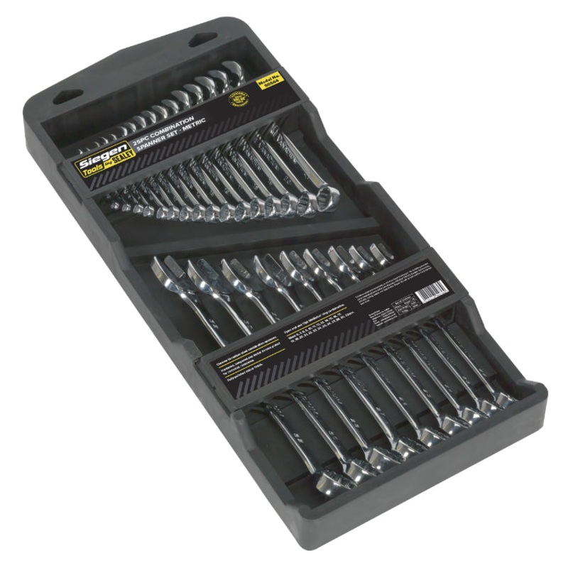 Part of the Siegen by Sealey range of quality tools at competitive prices.Drop-forged Chrome Vanadium steel combination spanners.Hardened, tempered and nickel chrome plated for corrosion resistance.Fully polished mirror finish.Open-end and 12-point WallDri