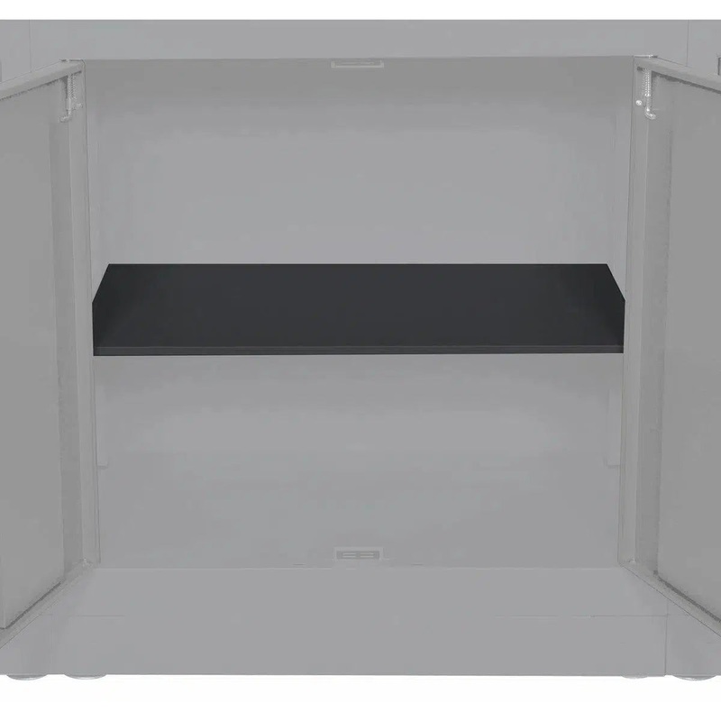 Expand your storage capabilities with additional dark grey height adjustable shelves for the 34" Double Door Cabinet with aluminum handles. Crafted with precision from heavy-duty 18-guage steel featuring powder coat pain to protect against surface damage a