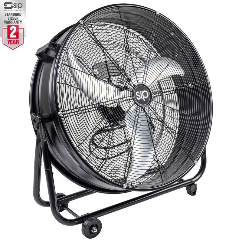 TheSIP 24" Heavy-Duty Drum Fandelivers powerful variable speed airflow to help cool spaces and circulate air in a variety of indoor industrial environments.Wheel-mounted on a cradled steel frame, the drum enclosed, heavy-duty 3-blade fan can be rotated bet