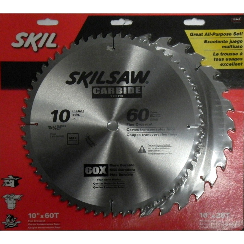Skil 75342 10" x 60 & 10" x 28 Tooth Saw Carbide Blade Carbide teeth last up to 60X longer than steel bladesExpansion slots to ensure blade runs straight and trueClear, anti-friction coateing reduces heat and frictionSkil saw blades for Skil saws5/8" Arbor