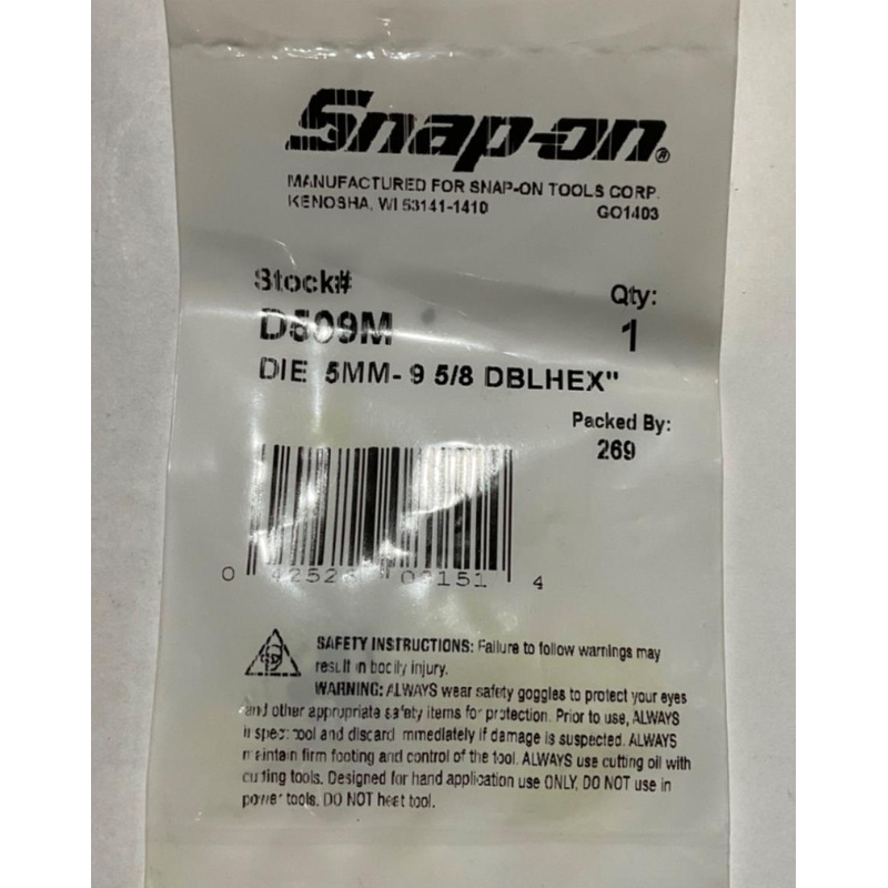 Snap-On D509M 5mm-9 5/8" Double Hex Die