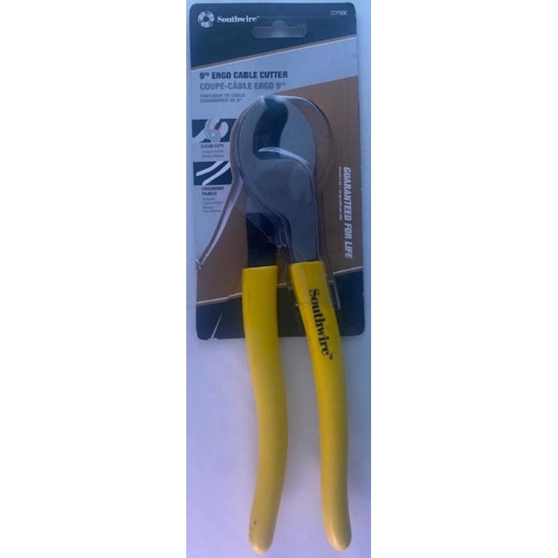Southwire CCP9DE 9" High-Leverage Ergo Cable CutterWith a high-leverage, hot-riveted pivot point, these cable cutters provide excellent one handed cutting. Designed to cut up to 2/0 copper and 4/0 AWG aluminum cables.Heat treated, precision ground blades e