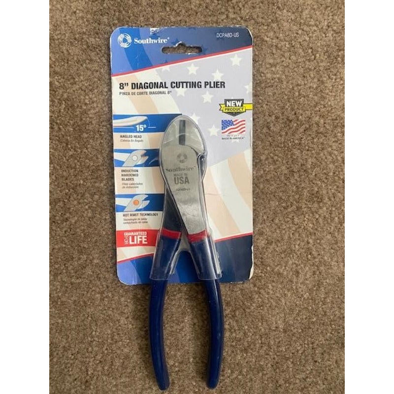 Southwire DCPA8D-US 8" Angled Head Diagonal Cutting Pliers USAThe DCPA8D-US is built to withstand jobsite wear and tear.It is assembled with hot rivet technology and made from American-forged steel.These pliers have a high-leverage design that provides max
