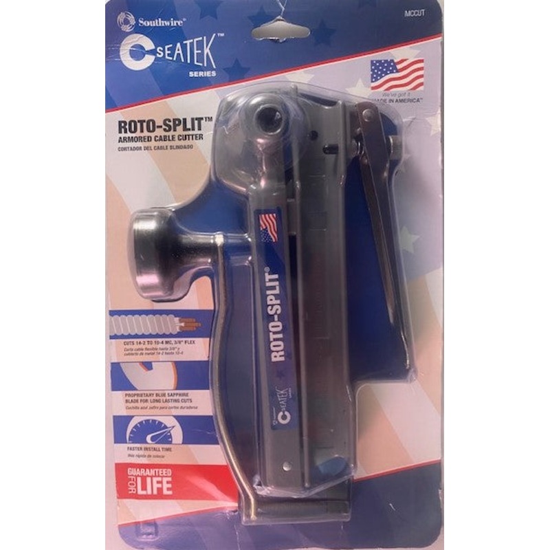 SOUTHWIRE MCCUT Seatek Roto-Split Armored Cable Wire Cutter Stripper BX/MC 14-2 10-4 USASeatek SeriesQuickly splits the armored jacket on #10, 12 and 14 armored cables and 3/8 In. flexible conduit.Easily handles all common BX, MC and flex cables. Securely