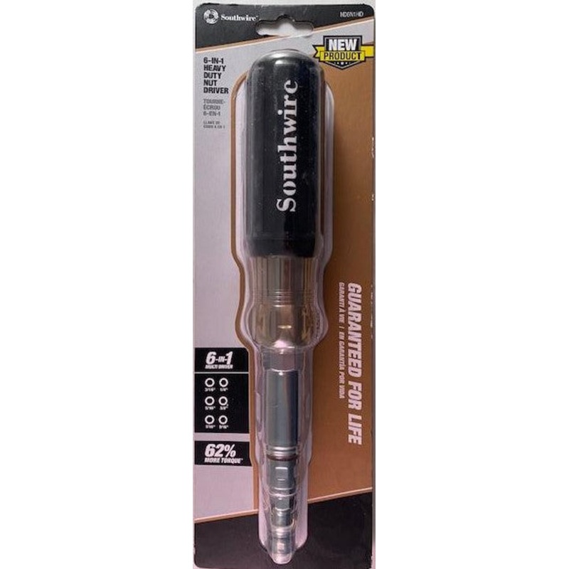 Southwire ND6N1HD 6-in-1 Heavy Duty Nut Driver Multi tool 3/16"-9/16"6 IN 1 MULTI DRIVER: 3/16", 1/4", 5/16", 3/8", 7/16", 9/16" nut driversDURABLE STEEL: Chrome-plated S2 steel is corrosion resistant for long lasting performance and useMAXIMUM TORQUE: Int
