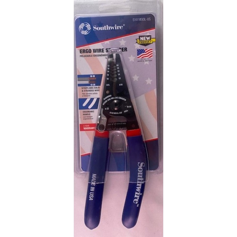 Southwire S1018SOL-US 10-18 AWG SOL & 12-20 AWG STR Ergo Handles Wire Stripper USAMade from durable heat-treated steel, Southwire's wire stripper and cutter is equipped to withstand any jobsite.It strips and cuts up to 10-18 AWG solid and 12-20 AWG strande