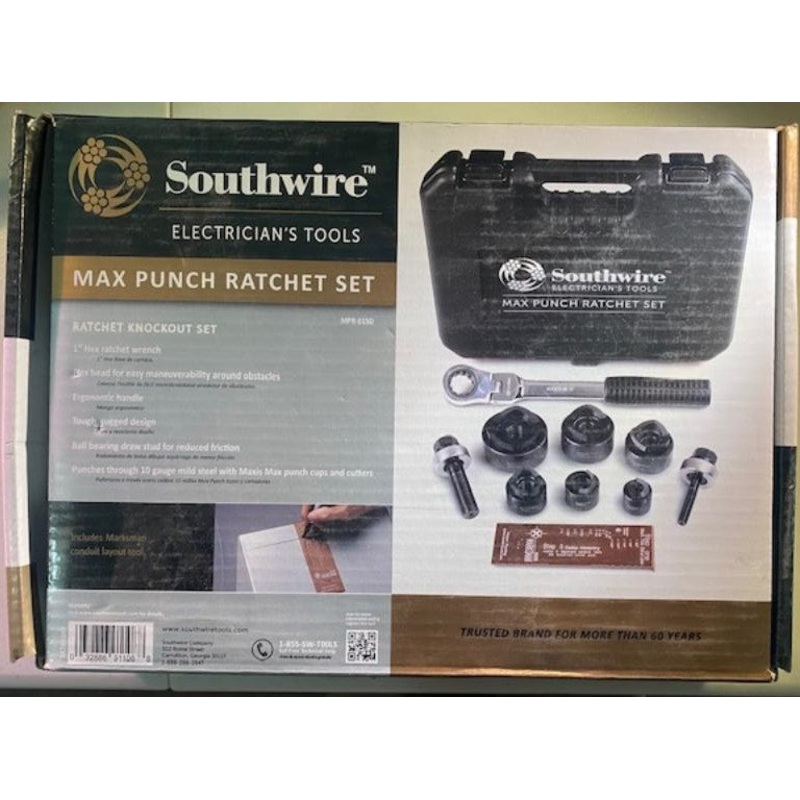 Southwire Tools & Equipment 58289240 Max Punch Ratchet Set With 1/2" to 2" DiesMAX PUNCH ratchet set includes Max Punch a Flex Head Ratchet, 1/2" - 2" cutting dies, 3/4" & 7/16" Bearing Draw Studs, Marksman Conduit Spacer and Heavy-Duty CaseSHARP cutting d