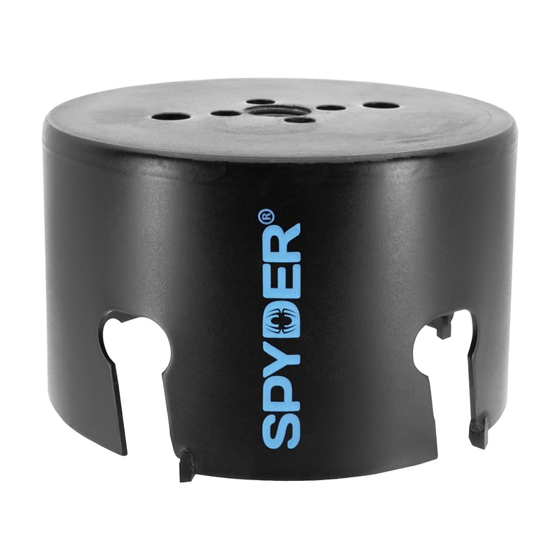 Spyder Rapid Switch and Rapid Core Eject Hole Saw System is a faster, easier and smarter hole saw system The New Spyder Hole Saws with patented, innovative Rapid Switch and Rapid Core Eject features make cutting holes a snap. Just push the button on the blade’s integrated arbor to move the hole saw on or off the pilot drill. Push the button again and slide back the adapter to take out the plug. You can even cut holes at an angle and easily enlarge existing holes. No other system is so efficient. With Spyder Rapid Switch and Rapid Core Eject features, it’s the most efficient hole saw system ever made. You can change diameter with one click and Quickly install or remove saw diameters. Just push the button to slide one hole saw off and slide another one on. To drop out the core you simply push the button and slide the blade back to remove the plug. No screwdriver required. You can even cut at an angle, just click and pull the hole saw back to extend the pilot drill’s length enough to cut at an angle. Release to complete the hole. You can also enlarge holes that were drilled too small, just use your hole saw as a guide to turn a small diameter hole into a larger one by using a wider diameter saw.